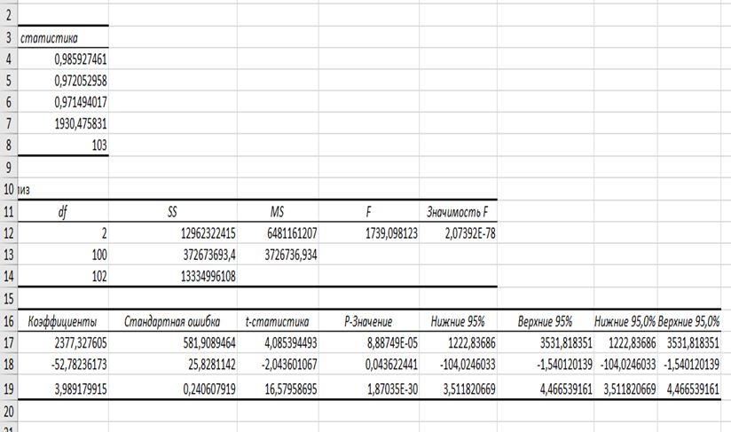 Рис.2. Результаты регрессионного анализа до введения фиктивных переменных
